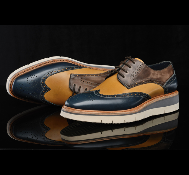 配色牛皮皮面 羊皮内里/垫脚 泡沫底 意大利手工制作