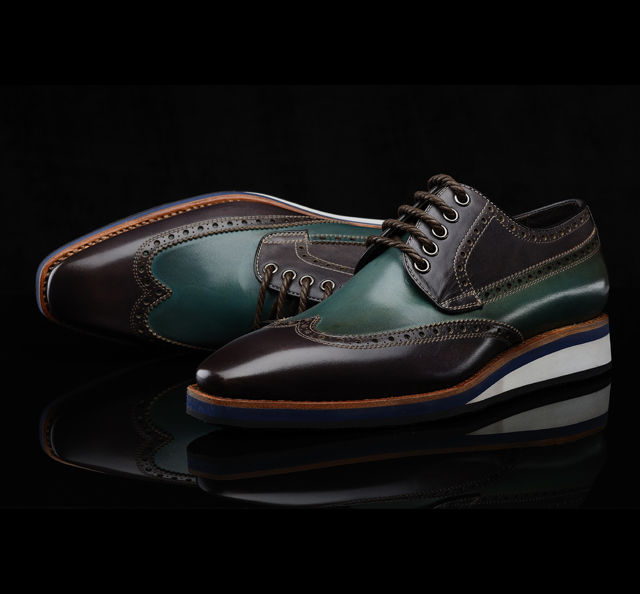 拼色牛皮面 羊皮内里/垫脚 泡沫鞋底 意大利手工制作