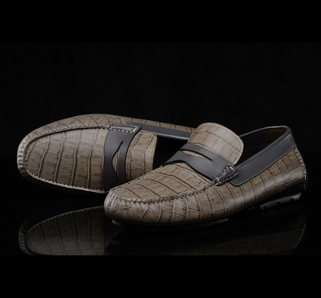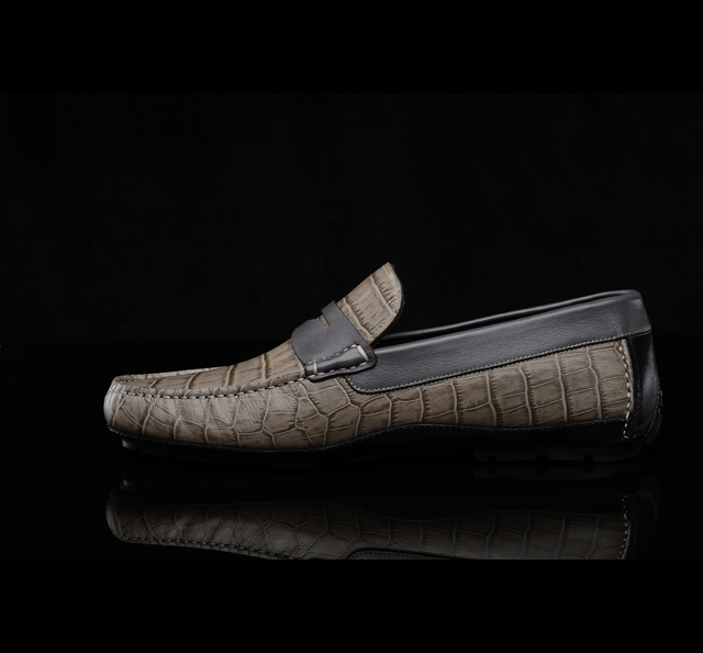 压鳄鱼纹牛皮面、羊皮 内里/垫脚 进口橡胶底 意大利手工制作