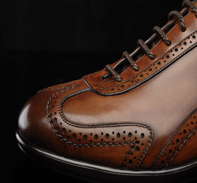 复古的小牛皮系带鞋,以拷花装饰和镂空设计,将固特异手工法的精良与舒适完美结合,于无声无息处帮您找到贵比黄金的舒适,让你拥有无价可估的非凡气度。